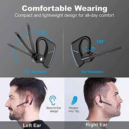 COMEXION Trucker Bluetooth Headset with Microphone Noise canceling, Wireless Headphone with Mute Microphone