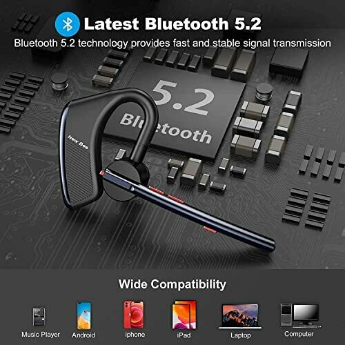 New bee Handsfree headset with latest Bluetooth 5.2 technology provides fast and stable signal transmission and can be paired with two Bluetooth devices. Connect distant reach to 49 feet. Compatible with all iOS and Android system smartphones including iPhone, iPad, Samsung, Sony, Motorola, LG, laptop and others.