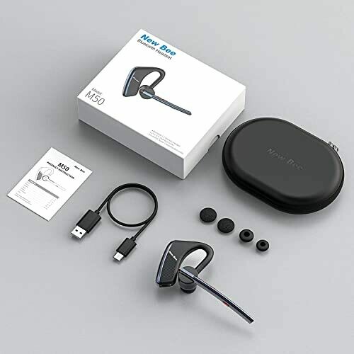 • Bluetooth Headset New bee 24Hrs Talktime CVC8.0 Dual Mic Noise Cancelling Bluetooth Earpiece V5.2 Wireless Headset