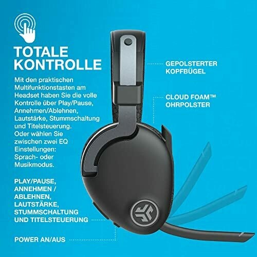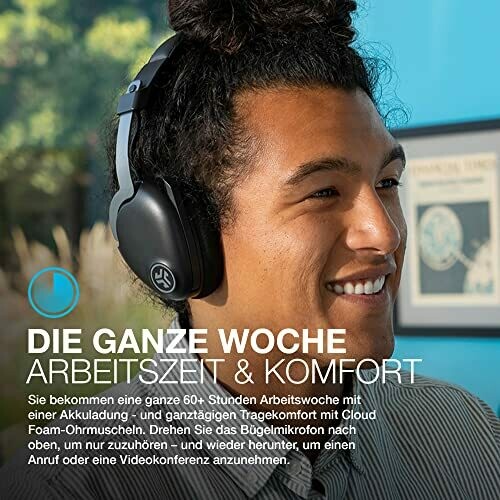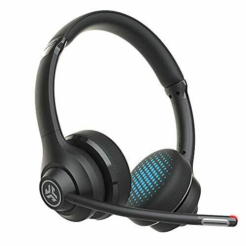Level up your workday with the JLab JBuds Work Wireless Headset with Microphone. This over-ear headset offers dual connectivity with Bluetooth Multipoint, allowing you to connect wirelessly to multiple devices simultaneously. The noise-canceling microphone ensures crystal clear calls, while the Cloud Foam earcups provide all-day comfort. With a 60+ hour battery life, you can enjoy a full work week on one charge. The headset features convenient multi-functional buttons for total control, including play/pause, volume, mute, and track control. The boom microphone can be rotated for listening only or for taking calls and video conferences. Included in the package are the JBuds Work Wireless Over-Ear Headset, Type-C Charging Cable, and Type-C to 3.5mm AUX Cable for wired use. Get yours today and level up your work productivity!