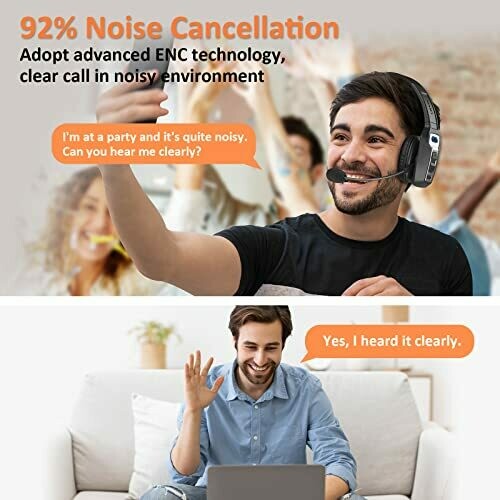 - Stable work at long distance This Bluetooth 5.2 headset with microphone has a wireless working range of up to 49 feet/15 meters, more stable connection and wider wireless distance. Even if you leave the communication temporarily, the clear sound quality is still unaffected. If you encounter any problems in the use of the product, please feel free to , our professional customer service team will provide you with high-quality solutions.