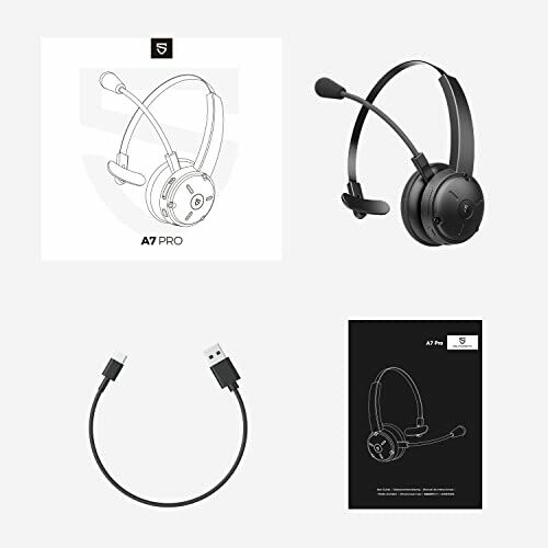 The SoundPEATS A7 Pro Bluetooth headset features AI noise-canceling technology for crystal-clear calls, long battery life, dual device connection, one-key mute mode, a 270° rotatable microphone, and a lightweight design. Enjoy 30-day money-back guarantee and 12-month replacement. Contact customer service for any inquiries.