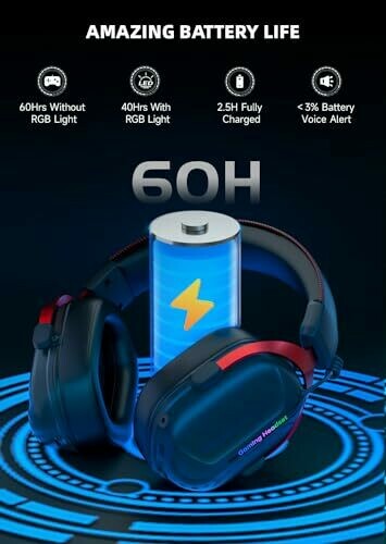 • ENC Technology Microphone & Surprising 60H Battery Life: Gvyugke gaming headphones wireless feature ENC noise reduction microphones for clear communication during team calls. Advanced battery tech offers up to 60 hours of usage when RGB lighting is off, reducing the need for frequent charging.