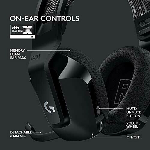 • Logitech G733 Wireless Gaming Headset with Suspension Headband, Rgb Lighting, Blue Vo!ce Mic, Pro-g Audio - Black