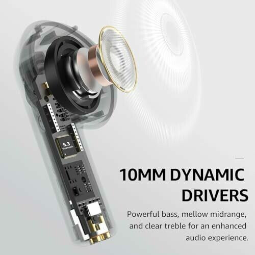 - 10mm drivers: TOZO E2 wireless earbuds feature extra-large 10mm drivers that deliver powerful bass, rounded mids and clear treble so you can enjoy your favorite songs.