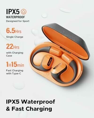 - Fast charging & game mode: Charging case can be fully charged in 1h15min, and provide up to 6.5 hours on a single charge and 22 hours of uninterrupted listening in total. In game mode, wireless earbuds with earhooks can accurately capture the sound of footsteps, gunfire, and other critical audio cues, helping players quickly identify enemy positions and gain a competitive edge.