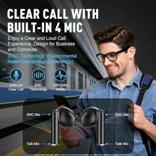 • 4-Mic and ENC Call Noise Reduction: Each headset has 2 built-in microphones, equipped with Environmental Noise Reduction (ENC) technology that can suppress 80% of the interfering background noise in the calling environment, intelligently enhances human voice through the four microphones, the wireless headphones accurately pickup voice and offer effective noise isolation achieving lossless and clear voice calls between the two parties, making communication more efficient.
