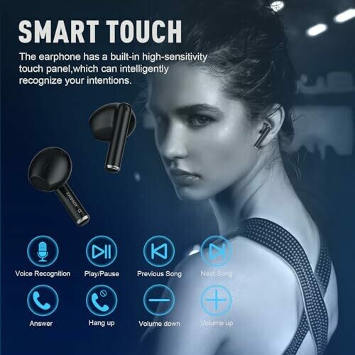 Wireless Bluetooth Earbuds with Hifi Stereo, 40h Battery, Noise Cancelling Mics, Touch Control, Type-c Charging, Dual Led Display - Ideal for Gym