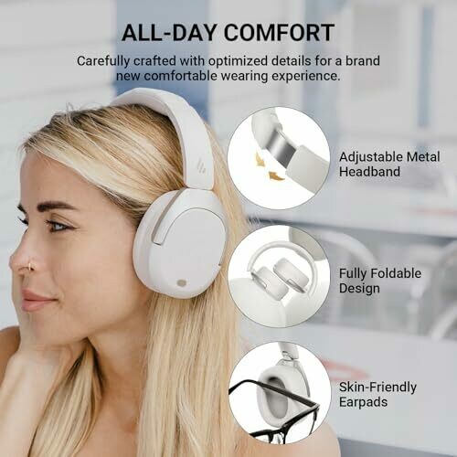 Edifier W830NB Wireless Over-ear Headphones with Active Noise Cancelling, Hi-res Audio, Dual Device Connection, 94 Hours Playtime, Fast Charging (white)