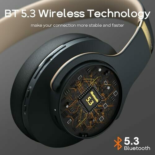 • Bluetooth 5.3 & Built-in Mic: Dual 40mm large-aperture driver units and Bluetooth 5.3 tech, these Bluetooth headphones provide you with more stable transmission speed, lower latency, and better audio output. Gives you a wonderful musical enjoyment and the integrated microphone of the wireless headphones allows hands-free clear telephone communication.