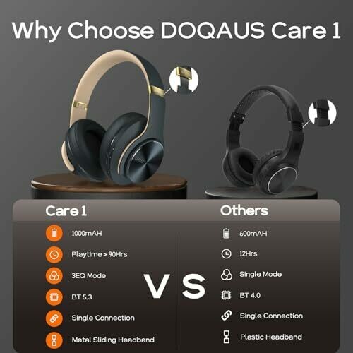 • The DOQAUS Care 1 headphones are designed for long-term wear. The soft over-ear cushions feature advanced venting and signature ergonomic pioting for a custom, flexible fit for any head shape. Making sure the ear cushions around your ears closely to get better sound experience and immerse yourself in the rich audio. Gentle Reminder