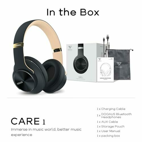 • 1 DOQAUS Bluetooth Headset, 1 AUX Cable, 1 Charging Cable (Without Charger), 1 Storage Bag, 1 User Manual. Full return within 30 days, 18 months quality guarantee. Good customer service