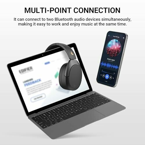 • Dual device connection - Bluetooth V5.4 supports seamless audio streaming and a stable connection. It supports dual device connections, enabling instant switching between music, videos, and calls on two different devices simultaneously.