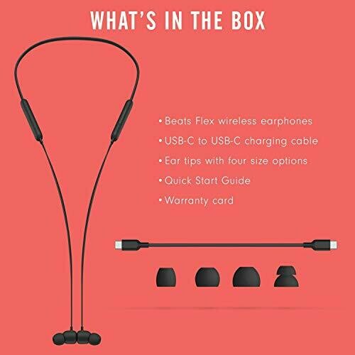 Beats Flex Wireless Earphones – Apple W1 Headphone Chip, Magnetic Earbuds, Class 1 Bluetooth, 12 Hours of Listening Time, Built-in Microphone - Beats Black