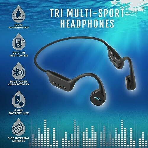 • Beyond waterproof performance: Designed to withstand your most intense aquatic adventures, the TRI Multi-Sport Headphones boast an IPX8 rating, making them submersible up to 12 feet. Whether you're swimming, surfing, or snorkeling, enjoy uninterrupted music without worrying about water damage.