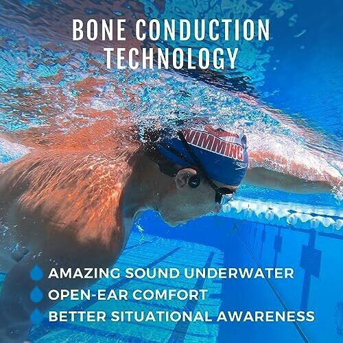 • Uninterrupted sound with bone conduction: Experience crystal-clear with bone conduction technology. For enhanced underwater listening, included earplugs provide better sound support, ensuring an optimal audio experience both in and out of the water.