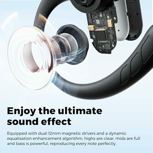 Unlike traditional in-ear headphones, our open-ear design integrates spatial audio technology, providing an immersive cinematic experience with the 12mm dual-magnet driver, placing you at the center of the action. |