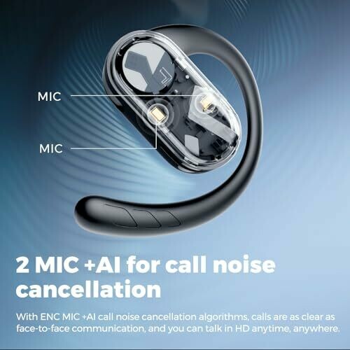 Equipped with dual microphones and AI noise reduction algorithms, these Bluetooth headphones provide crystal-clear call quality, making conversations as clear as face-to-face interactions. |