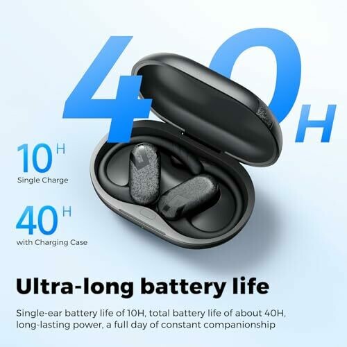 Enjoy up to 10 hours of battery life per wireless earbud and a total of approximately 40 hours (based on music playback at 60% volume and other features turned off). Battery data from SOUNDPEATS Lab; actual performance may vary based on volume and environmental factors. |